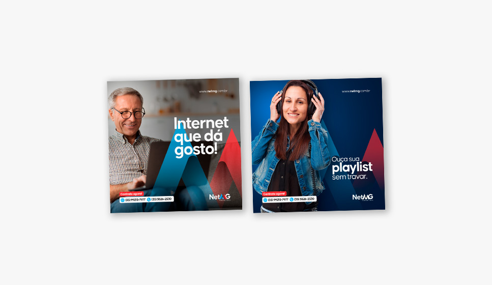 A NetMG, provedor de acesso à internet na cidade de Itaú de Minas/MG, fez um rebranding de marca conosco. Na oportunidade, utilizamos elementos e paleta usadas anteriormente, mantendo a identidade da marca